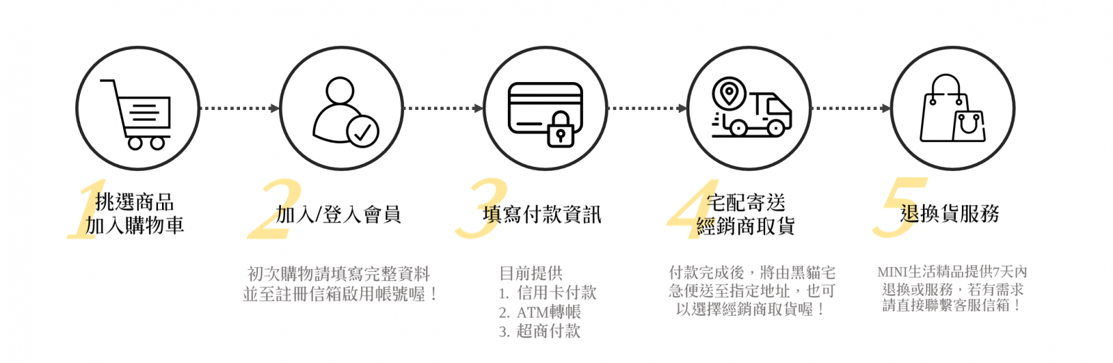 | 5步驟完成您的購物!