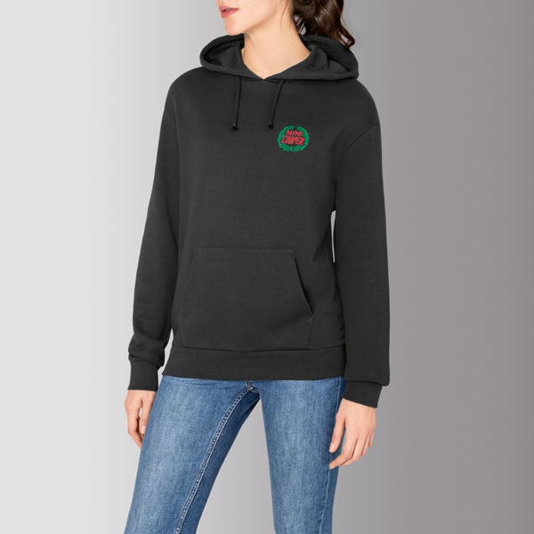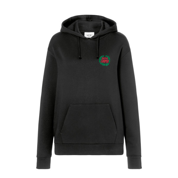 - 帶MINI Cooper 復刻板 logo刺繡於左胸口處的帽T。