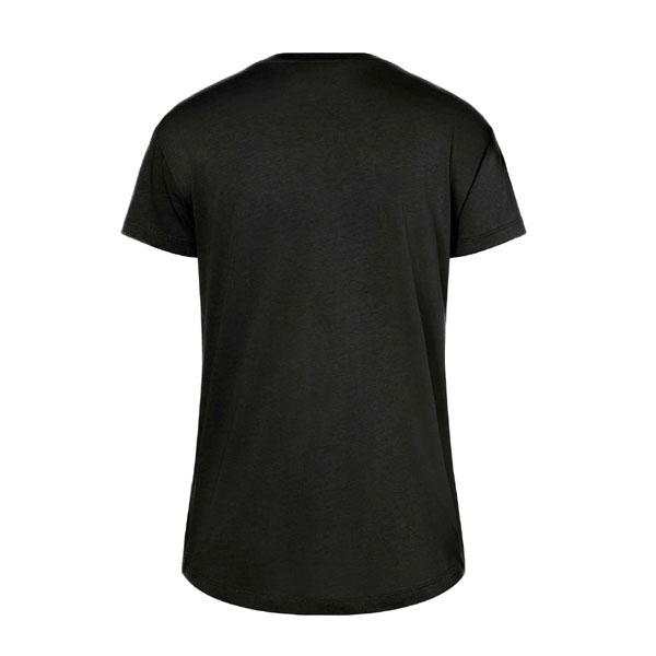 微寬鬆、圓領、落肩與背面圓弧下擺的設計。