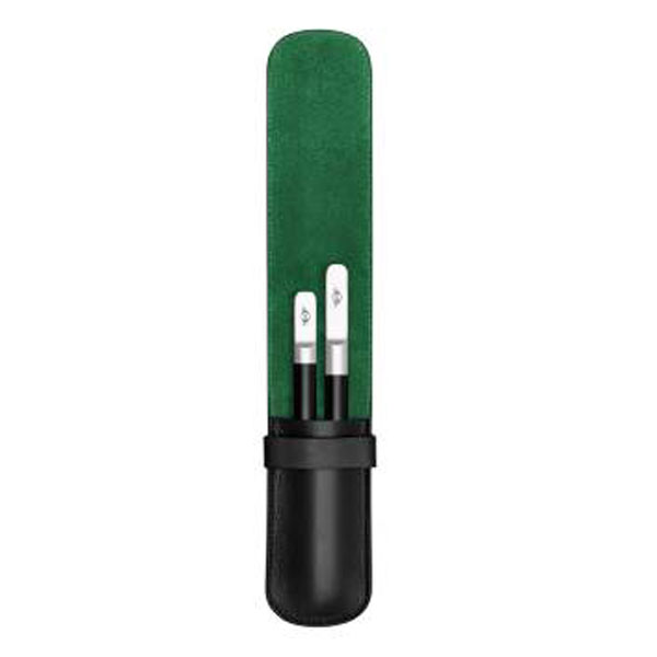 - 可放置2-3 筆,並帶有皮圈扣環的皮革筆袋。
