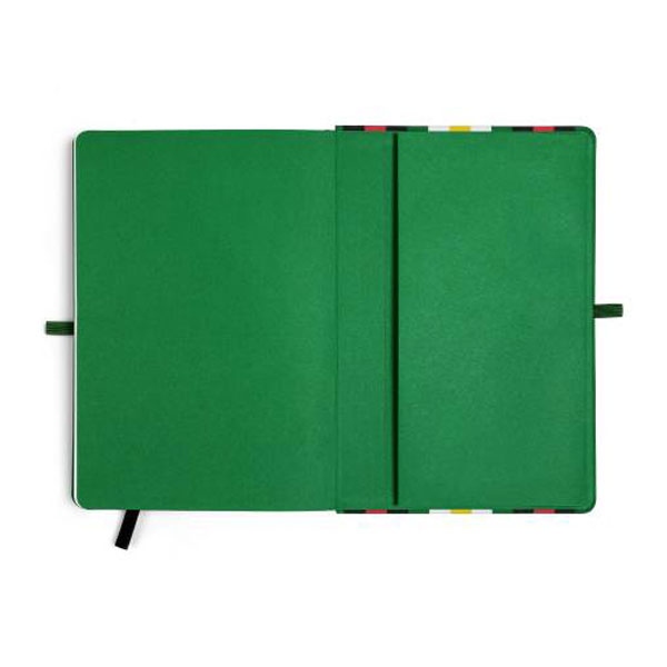 - 具鬆緊帶圈環(綠色)可夾帶筆或當作筆記本閉合使用。