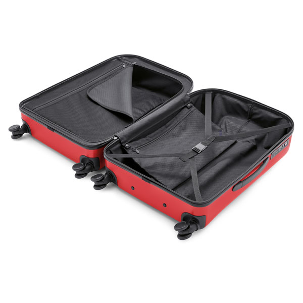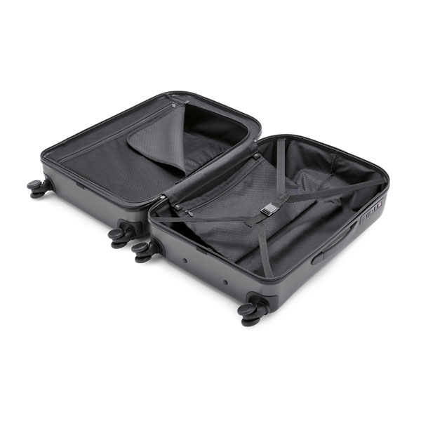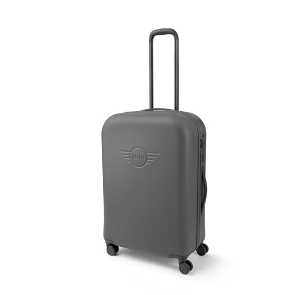 兼顧容量、外觀與耐用性的MINI拉桿行李箱,正面帶有浮雕MINI翅膀LOGO,是長程旅行的最佳伴旅。內部主隔層有兩種收合方式,一側是帶有防水拉鏈隔層並帶有TSA海關鎖,另一側是磁扣式束衣帶,以及額外可拆卸式的拉鍊帶,不僅可以安全收納物品並同時保持整潔。外箱兩側由堅固的緩衝部見製成而耐用。監穩的拉桿與無聲滑輪使移動行理箱時滑順不費力。