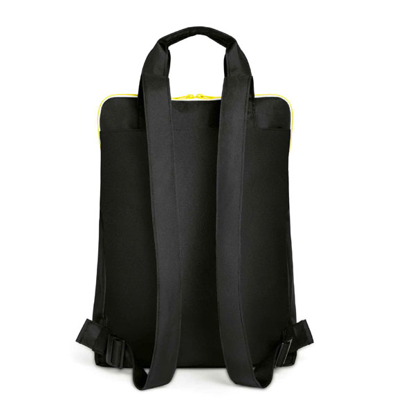 由回收環保塑料製成,帶有加厚筆電隔層與主隔層於內部,具有可收納的手提帶與肩背帶可更換背法。