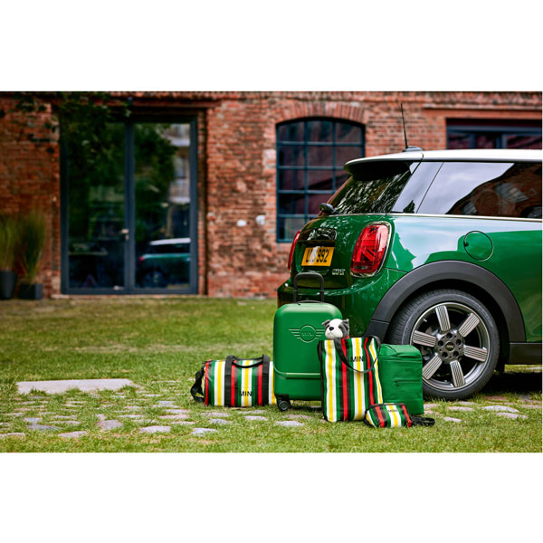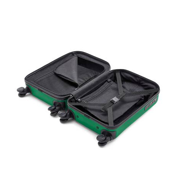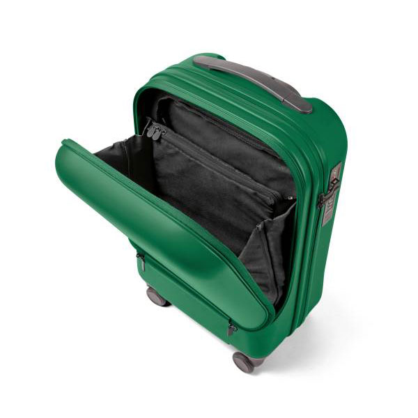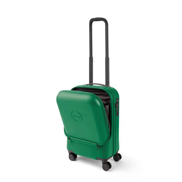 - 硬殼萬向滑輪登機箱正面帶浮雕MINI翅膀Logo的開口隔層,實用而方便。