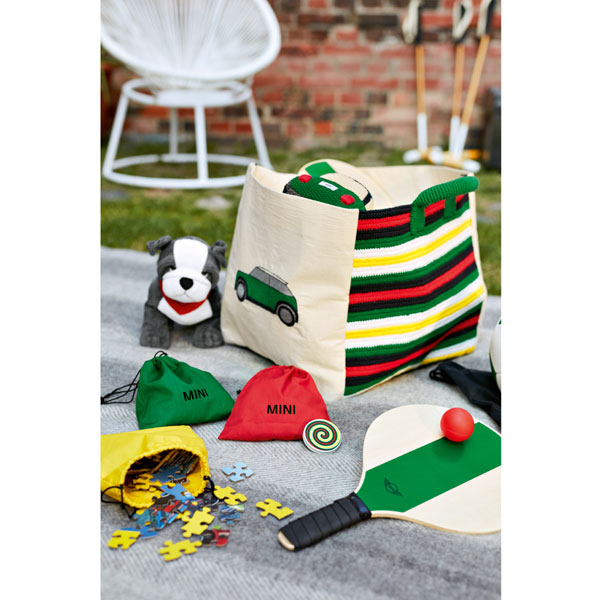 - 辣椒紅的印花領巾並帶有黑色MINI翅膀Logo印製在上。